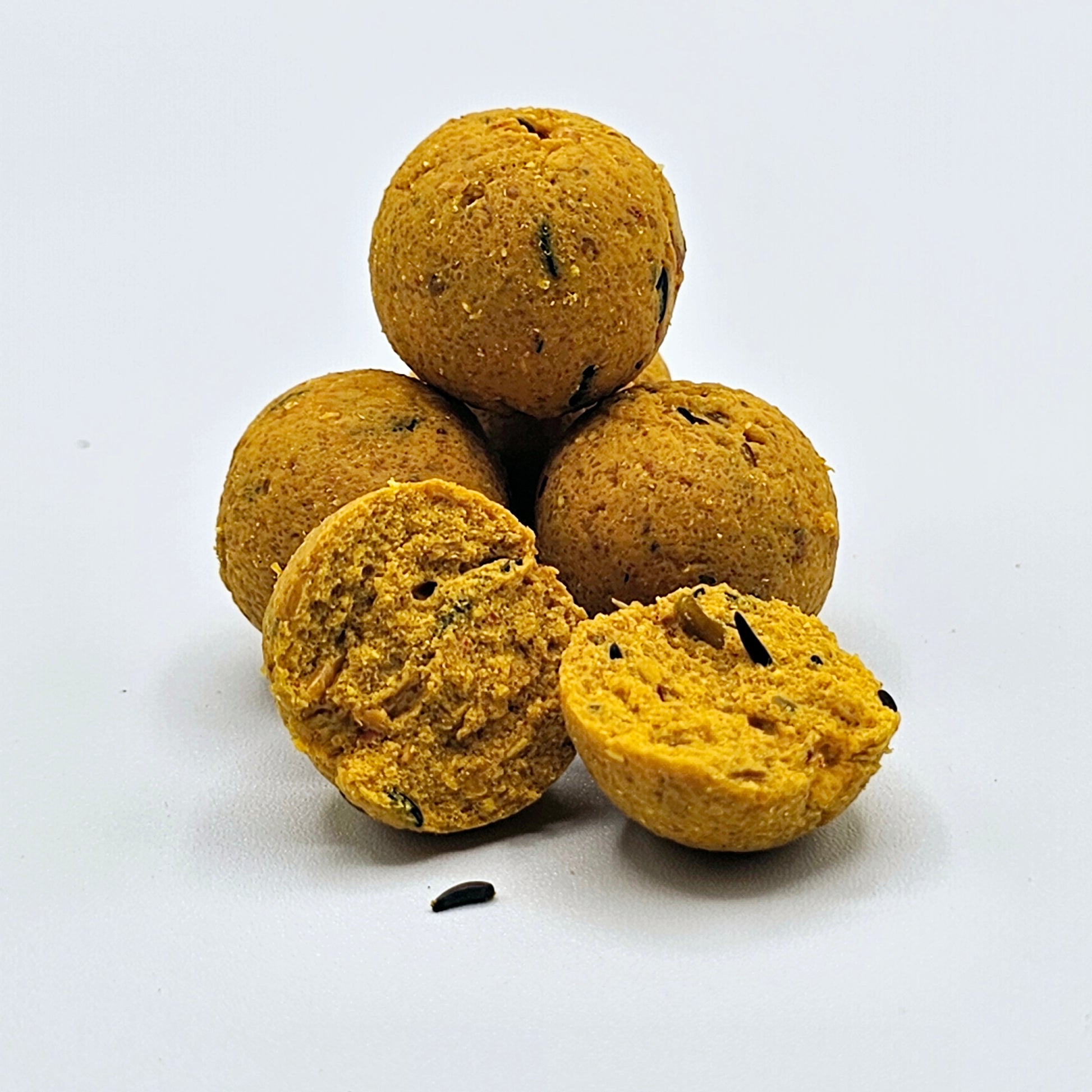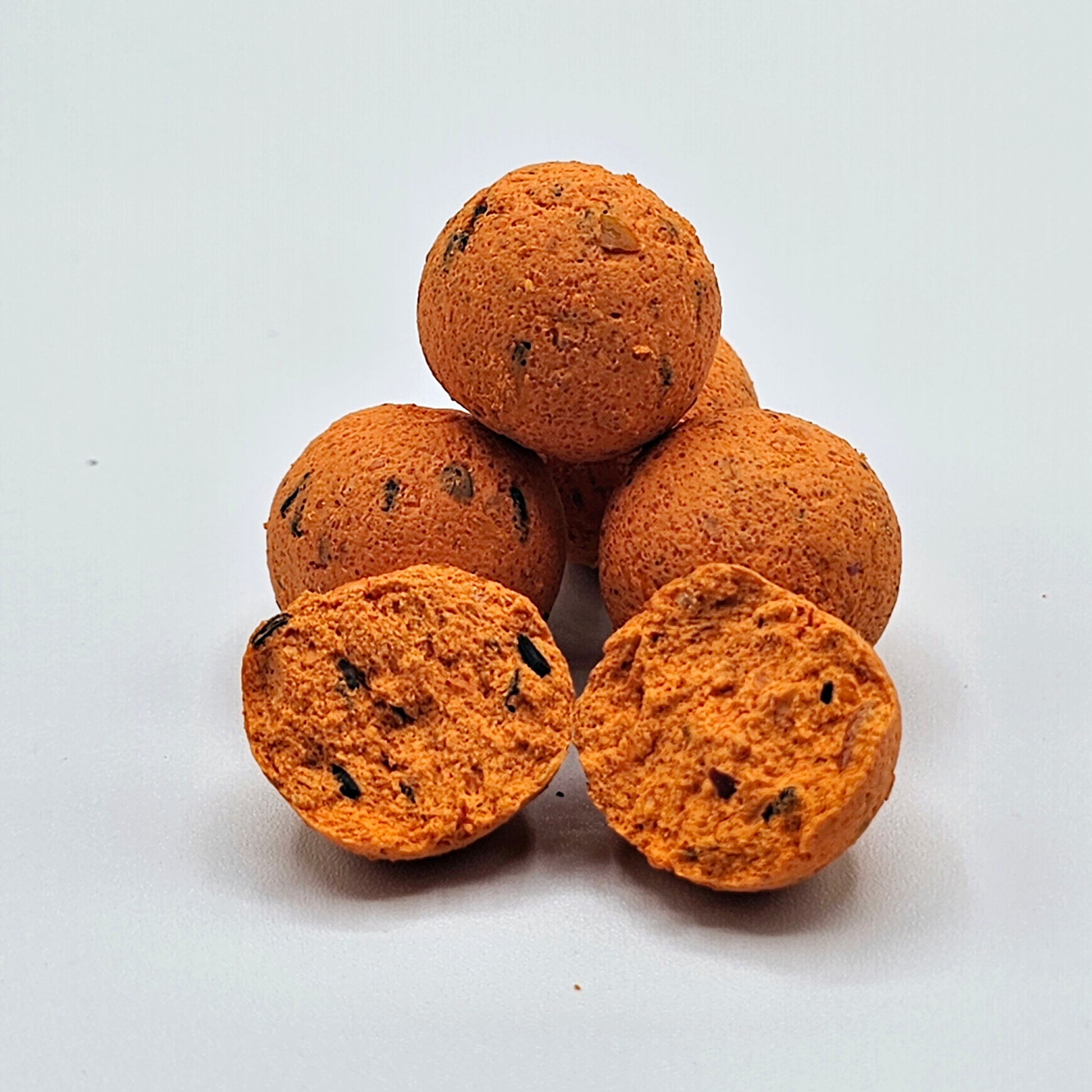 The Highest Quality Base Mix delivers nothing short of the highest nutritional value to the fish. This helps the fish to establish our baits as food source that they return to time and time again. Our boilie is easily digested and delivers 55% proteins, packed with Vitamin A, C, E,B-6, magnesium, iron and potassium. Combined with the all-natural taste enhancers it is a game changing combination.